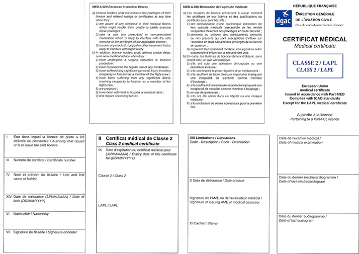 Exemples: un pilote de 39 ans ne pourra bénéficier dune aptitude médicale au delà de ses 42 ans) Un certificat médical délivré à un titulaire nayant pas 50 ans cesse dêtre valable quand celui-ci atteint lâge de 52 ans (LAPL) et 51 ans (Classe 2). |