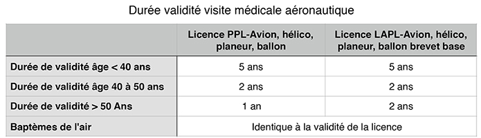 Délai des 45 jours : Les personnels navigants disposent dune latitude de 45 jours avant la date déchéance de leur aptitude en cours pour passer leur visite médicale auprès dun médecin agréé. (Exemple : un pilote de plus de 40 ans, licence LAPL, dont laptitude médicale se termine le 1er juin 2016 pourra se présenter à partir du 18 avril 2016 et bénéficiera dune aptitude jusquau 1er juin 2018).